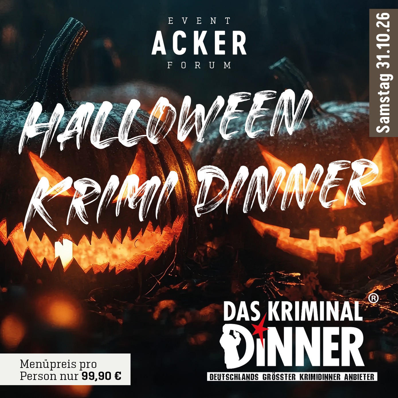 Änderungen an Veranstaltung einreichen NameBeschreibung<p><strong>Schafkopfkrimi - Halloween Special</strong></p> <p>Erleben Sie ein schaurig-schönes Halloween-Krimidinner mit Deutschlands größtem Krimidinner-Anbieter! <strong>Regionale Küche, packende Storys und echtes Gänsehaut-Feeling </strong>– werden Sie zum Meisterdetektiv und lösen Sie den Fall bei Kerzenschein!</p> <p>Folgende Bestandteile sind im Preis inbegriffen: </p> <p><strong>1x Ticket für das Krimi-Dinner</strong></p> <ul> <li><strong>Aperitif</strong></li> <li><strong>Gruß aus der Küche </strong></li> <li><strong>1: Gang: </strong>Kürbis aus dem Hexenkessel Cremige Kürbissuppe mit</li> <li>Kürbiskernöl und Käse-Spinnennetz</li> <li><strong>2. Gang: </strong> Geschmorte Ochsenbacke mit Portweinjus, Selleriepüree</li> <li>und blutiger Beete</li> <li><strong>3. Gang: </strong>Hausgemachte Grusel-Schokoladen-Gelato mit flambiertem Pfirsich und Hafer Crumble</li> </ul> <p>Menüpreis pro Person nur <strong>99,90 €</strong></p> <p><strong>Tickets </strong>unter <u><a data-tabindex-counter="1" data-tabindex-value="none" href="https://www.dasacker.de/specials-termine/veranstaltungen.html" tabindex="-1">www.dasacker.de/specials-termine/veranstaltungen.html</a></u></p> Bild Sie können hier Dateien ablegen Erlaubte Dateitypen: NameVorschauBeschreibungAlternativtextUrheberrechtLizenzDateigrößeTypZuletzt geändertKategorie2026-02-16_15-05-49-event_vorschau_2026_quadrat9----658.63 kBBild16.02.2026, 15:05 - Hinzufügen Dateien Sie können hier Dateien ablegen Erlaubte Dateitypen: Hinzufügen Datum vonDatum bisDie Acker AlmDas ACKER Event ForumVeranstalter(Bitte auswählen)Die Acker AlmVeranstaltungsortKulinarische VeranstaltungKategorienIhre AngabenNachnameVornameE-MailTelefonSofern die Veranstaltung abgesagt wird, tragen Sie hier bitte die Gründe dafür ein. Sofern es sich um einen neuen Veranstalter oder Veranstaltungsort handelt, tragen Sie hier bitte die Adresse und Kontaktdaten ein.Bei Absage der Veranstaltung: Grund der Absage. Bei neuem Veranstalter / Ort: Name, E-Mail und/oder Telefon, Webseite, Anschrift.Hiermit bestätige ich, dass ich die Rechte an den von mir hochgeladenen Bildern und Dateien besitze und diese auf der Veranstaltungsplattform und all ihren verknüpften Seiten dargestellt werden dürfen.CaptchaForename Eingaben absenden Abbrechen Informationen zur Verarbeitung Ihrer personenbezogenen Daten finden Sie in der Datenschutzerklärung. * Pflichtfeld Möchten Sie die Änderungen verwerfen?