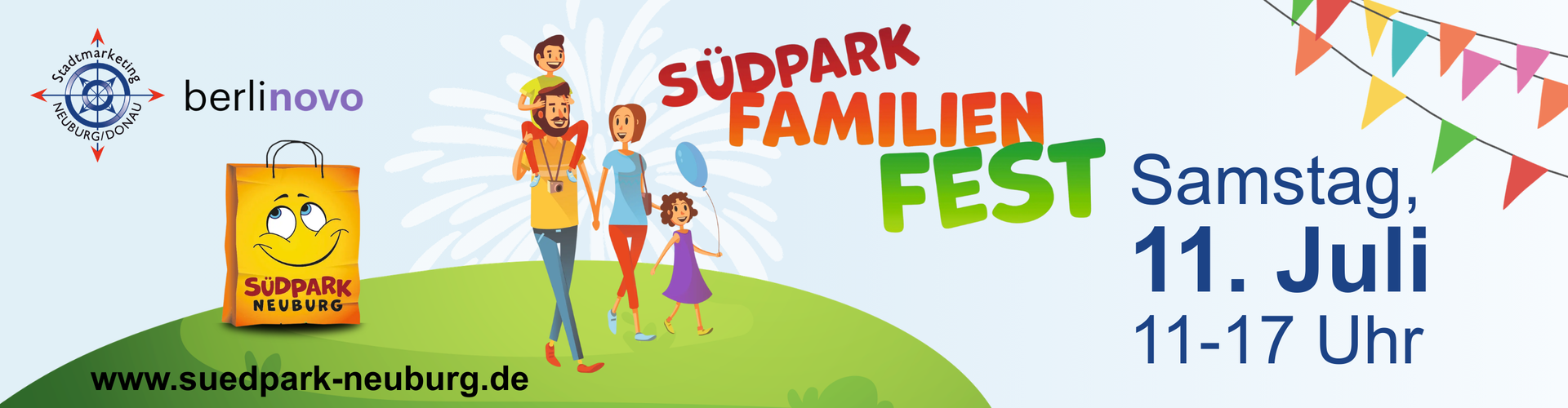 Änderungen an Veranstaltung einreichen NameBeschreibung<p style="text-align:justify">Am Samstag, den 11. Juli findet von 11 – 17 Uhr zum neunten Mal das Familienfest im Neuburger Südpark statt. Im Auftrag der berlinovo, dem Verwalter des Südparks 1, hat der Stadtmarketingverein wieder einen Tag für Groß und Klein organisiert. Ein paar Geschäfte haben sich dafür passende Aktionen einfallen lassen und ein attraktives und abwechslungsreiches Rahmenprogramm lädt zum Verweilen ein. Egal ob Glitzertattoos, Live-Musik, Rätselspaß, Tanzauftritte oder eine Hüpfburg an diesem Tag ist wirklich für jeden etwas geboten!</p> <p style="text-align:justify">Um dem erhöhten Verkehrsaufkommen am Veranstaltungstag entgegenzuwirken, bitten die Organisatoren die Besucher, bestenfalls zu Fuß oder mit dem Fahrrad die Veranstaltung zu besuchen.</p> <p style="text-align:justify">Das Familienfest wird am 11. Juli zu einem wahren Einkaufserlebnis! Einkaufen, Aktionen in den Geschäften, ein buntes Rahmenprogramm und eine Hüpfburg für die Kleinen sorgen nicht nur für Spiel und Spaß, sondern präsentieren den Südpark auch von einer besonderen Seite!</p> Bild Sie können hier Dateien ablegen Erlaubte Dateitypen: NameVorschauBeschreibungAlternativtextUrheberrechtLizenzDateigrößeTypZuletzt geändertKategoriefamilienfest_suedpark----1.01 MBBild25.02.2026, 14:45 - Hinzufügen Dateien Sie können hier Dateien ablegen Erlaubte Dateitypen: Hinzufügen Datum vonDatum bisStadtmarketing Neuburg an der Donau e.V.Veranstalter(Bitte auswählen)Einkaufszentrum SüdparkVeranstaltungsortKinderprogrammFeste und FeiernStadtmarketingKategorienIhre AngabenNachnameVornameE-MailTelefonSofern die Veranstaltung abgesagt wird, tragen Sie hier bitte die Gründe dafür ein. Sofern es sich um einen neuen Veranstalter oder Veranstaltungsort handelt, tragen Sie hier bitte die Adresse und Kontaktdaten ein.Bei Absage der Veranstaltung: Grund der Absage. Bei neuem Veranstalter / Ort: Name, E-Mail und/oder Telefon, Webseite, Anschrift.Hiermit bestätige ich, dass ich die Rechte an den von mir hochgeladenen Bildern und Dateien besitze und diese auf der Veranstaltungsplattform und all ihren verknüpften Seiten dargestellt werden dürfen.CaptchaForename Eingaben absenden Abbrechen Informationen zur Verarbeitung Ihrer personenbezogenen Daten finden Sie in der Datenschutzerklärung. * Pflichtfeld Möchten Sie die Änderungen verwerfen?