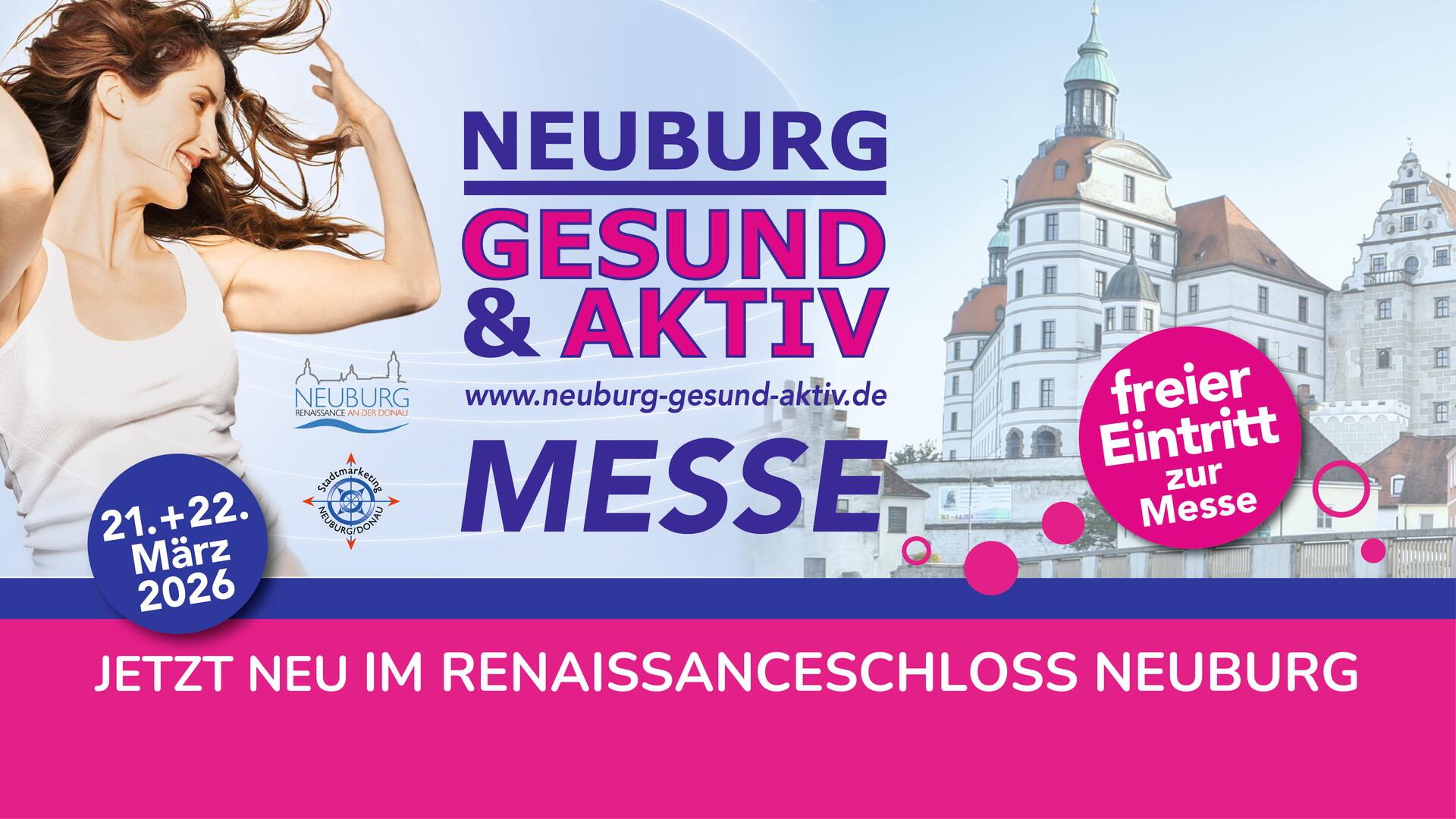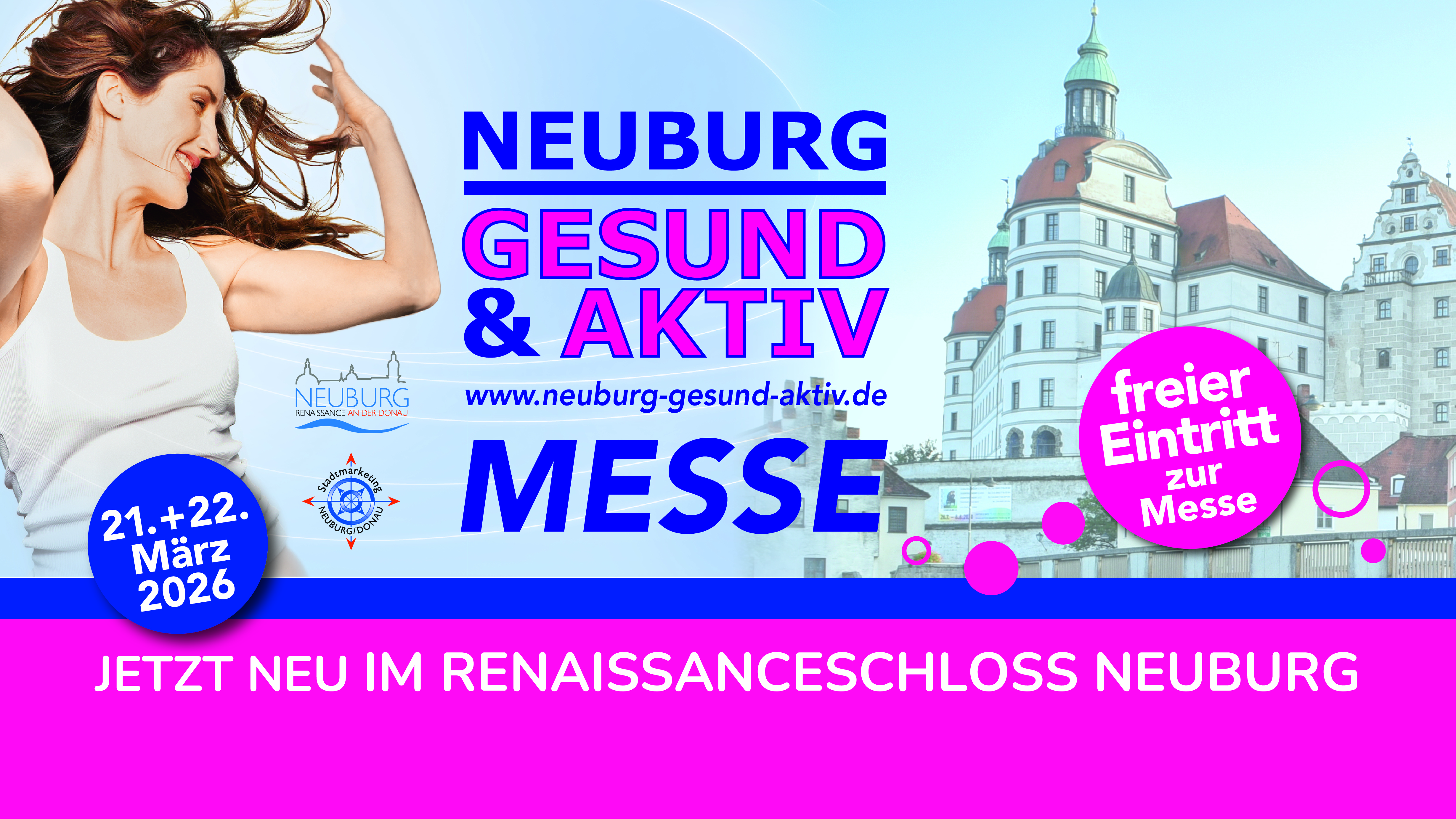 Änderungen an Veranstaltung einreichen NameBeschreibung<p><strong>Messe „Neuburg Gesund & Aktiv“</strong><br /> <strong>21. & 22. März 2026 | Schloss Neuburg | Eintritt frei</strong></p> <p style="text-align:justify">Freuen Sie sich auf ein neues, inspirierendes Messeformat in einer ganz besonderen Kulisse: dem Renaissance-Schloss Neuburg im Herzen der historischen Altstadt.</p> <p style="text-align:justify">Mit der Verbindung der bewährten Messe „Gesund & Aktiv“ und den Neuburger Yoga-Tagen entsteht ein abwechslungsreiches Erlebnis rund um Gesundheit, Bewegung und bewusstes Leben. Ziel ist es, langjährige Besucherinnen und Besucher genauso zu begeistern wie neue Zielgruppen anzusprechen.</p> <p style="text-align:justify">Auf der Messe präsentieren sich zahlreiche Aussteller aus den Bereichen Gesundheit, Bewegung, Wellness, Ernährung, Beauty, Lifestyle und Vorsorge. Entdecken Sie neue Produkte, probieren Sie Angebote direkt vor Ort aus und lassen Sie sich persönlich beraten.</p> <p style="text-align:justify">Zusätzlich erwartet Sie ein vielseitiges Rahmenprogramm mit:</p> <ul> <li> <p style="text-align:justify">Fachvorträgen und inspirierenden Impulsen</p> </li> <li> <p style="text-align:justify">Mitmach- und Aktivangeboten</p> </li> <li> <p style="text-align:justify">Yoga-Sessions & Achtsamkeitseinheiten</p> </li> <li> <p style="text-align:justify">Bühnenprogramm und Vorträgen</p> </li> <li> <p style="text-align:justify">erweitertem Catering-Angebot mit gesunden Spezialitäten</p> </li> <li> <p style="text-align:justify">und vielen weiteren Highlights</p> </li> </ul> <p style="text-align:justify"><strong>Messe-Öffnungszeiten:</strong></p> <p style="text-align:justify">Samstag, 21. März 2026 · 10:00 – 17:00 Uhr<br /> Sonntag, 22. März 2026 · 10:00 – 16:00 Uhr</p> <p style="text-align:justify">Für Familien gibt es eine kostenlose, liebevoll gestaltete Kinderbetreuung für Kinder von 5 bis 12 Jahren – damit Eltern entspannt über die Messe „Neuburg Gesund & Aktiv“ schlendern können</p> Bild Sie können hier Dateien ablegen Erlaubte Dateitypen: NameVorschauBeschreibungAlternativtextUrheberrechtLizenzDateigrößeTypZuletzt geändertKategorie2026-02-26_11-26-12-2602_veranstaltungsbild_g-a----8.24 MBBild26.02.2026, 11:26 - Hinzufügen Dateien Sie können hier Dateien ablegen Erlaubte Dateitypen: Hinzufügen Datum vonDatum bisStadtmarketing Neuburg an der Donau e.V.Veranstalter(Bitte auswählen)Residenzschloss NeuburgVeranstaltungsortGesundheit und WellnessKinderprogrammMesseMarktSport und FreizeitVortragWorkshops & SeminareKategorienIhre AngabenNachnameVornameE-MailTelefonSofern die Veranstaltung abgesagt wird, tragen Sie hier bitte die Gründe dafür ein. Sofern es sich um einen neuen Veranstalter oder Veranstaltungsort handelt, tragen Sie hier bitte die Adresse und Kontaktdaten ein.Bei Absage der Veranstaltung: Grund der Absage. Bei neuem Veranstalter / Ort: Name, E-Mail und/oder Telefon, Webseite, Anschrift.Hiermit bestätige ich, dass ich die Rechte an den von mir hochgeladenen Bildern und Dateien besitze und diese auf der Veranstaltungsplattform und all ihren verknüpften Seiten dargestellt werden dürfen.CaptchaForename Eingaben absenden Abbrechen Informationen zur Verarbeitung Ihrer personenbezogenen Daten finden Sie in der Datenschutzerklärung. * Pflichtfeld Möchten Sie die Änderungen verwerfen?